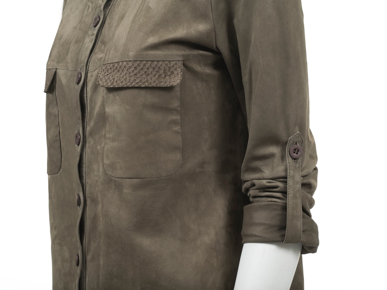 Luna long shirt fits for jeans or as s dress with high heals. The shirt has collar, buttons in the front, and beautiful hand-stitched buttonholes. Long sleeves. A small belt is included.